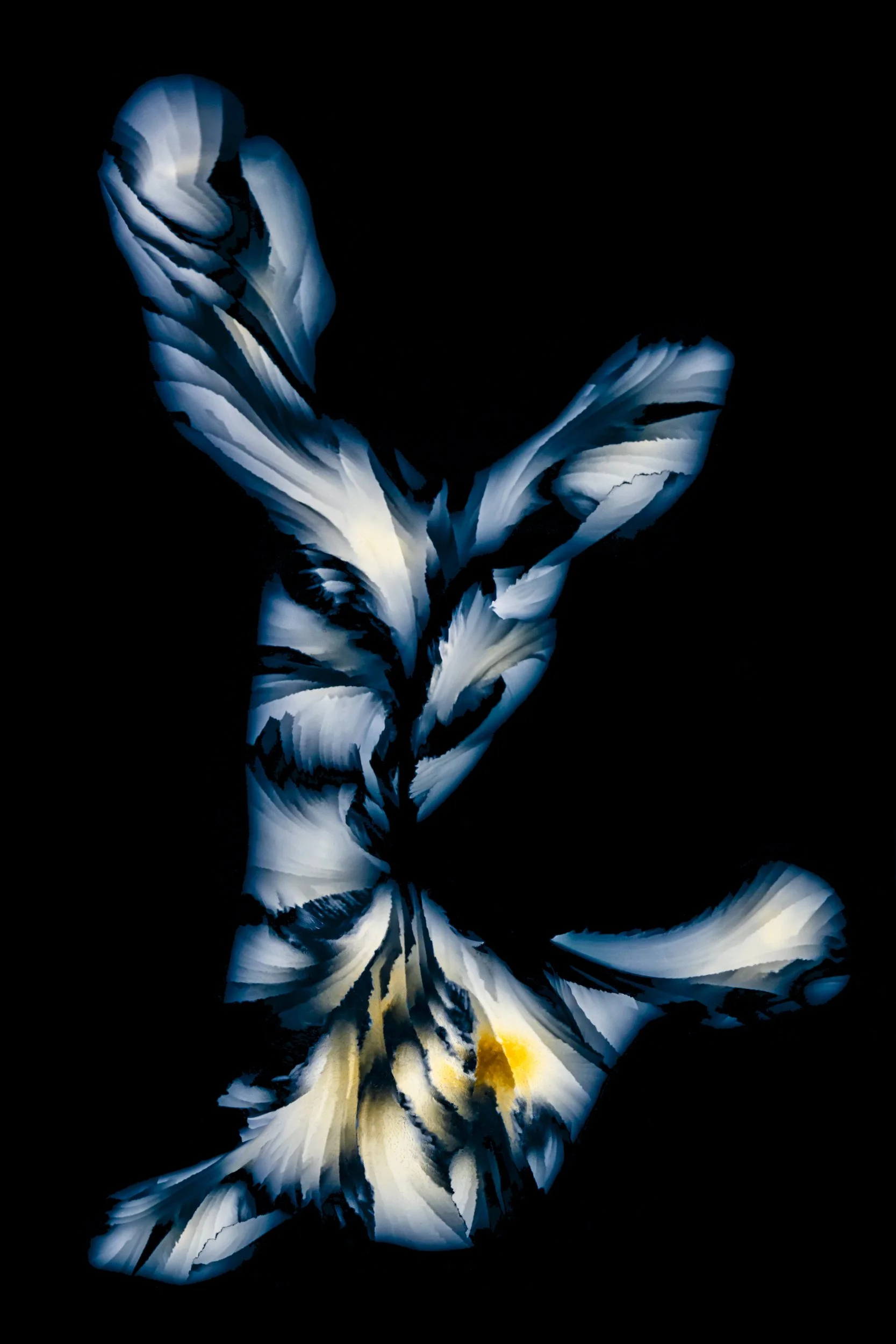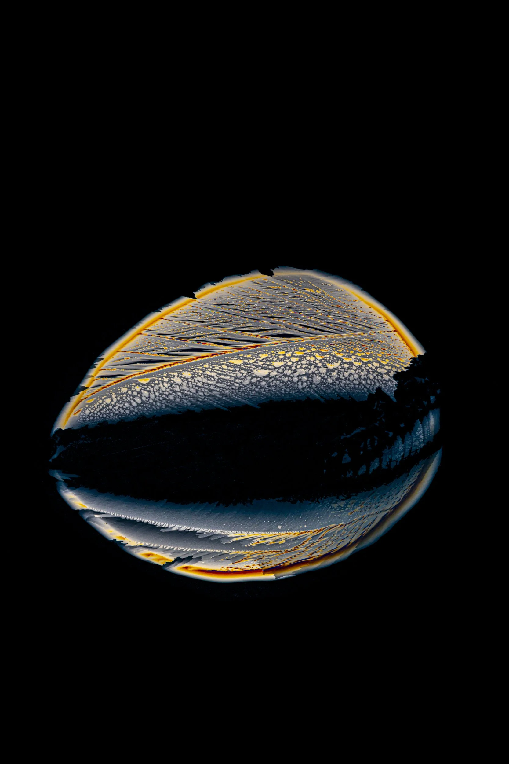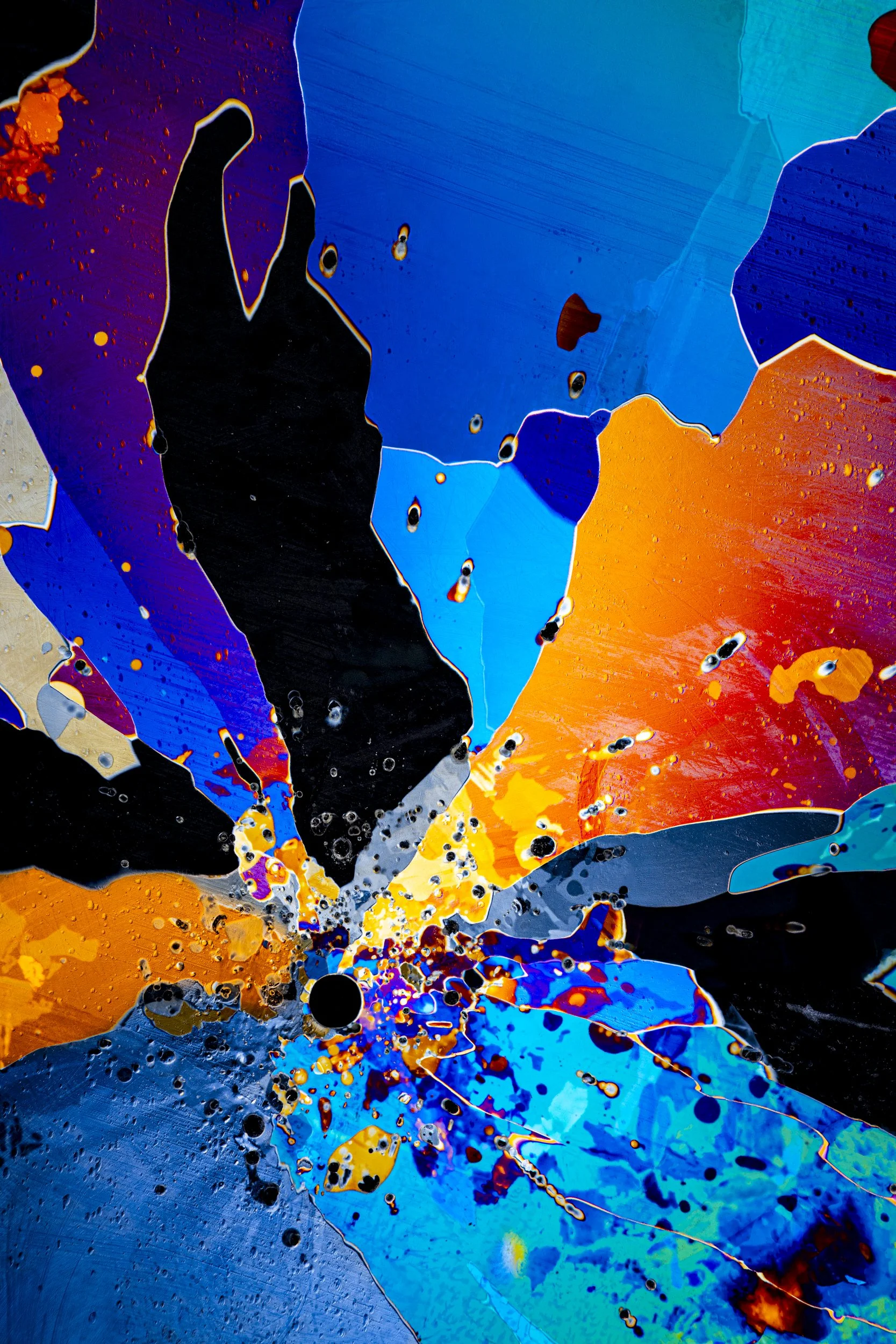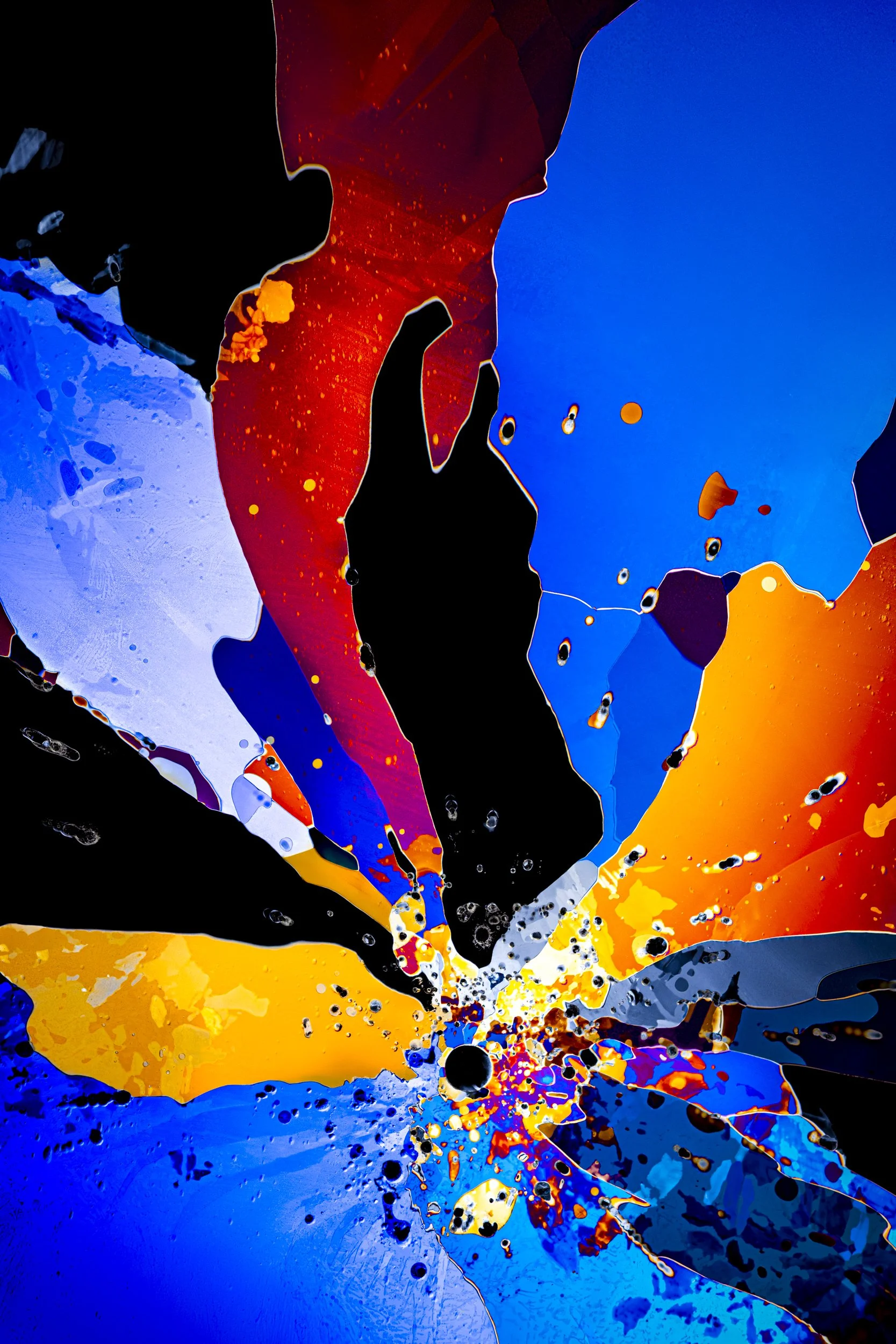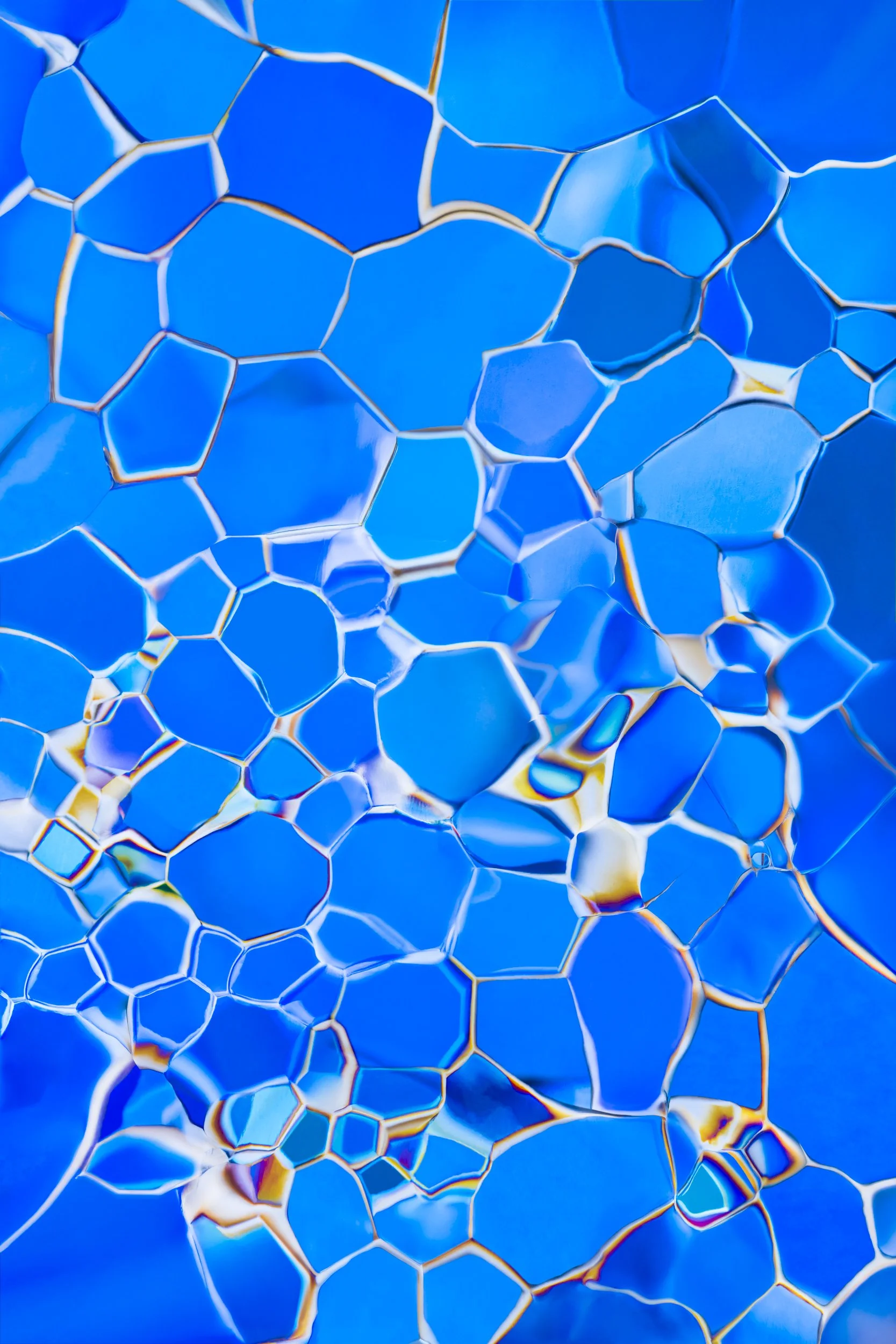 The abstract and colourful photographs show thin sections of ancient glacier ice and ultra pure water ice under cross polarised light.