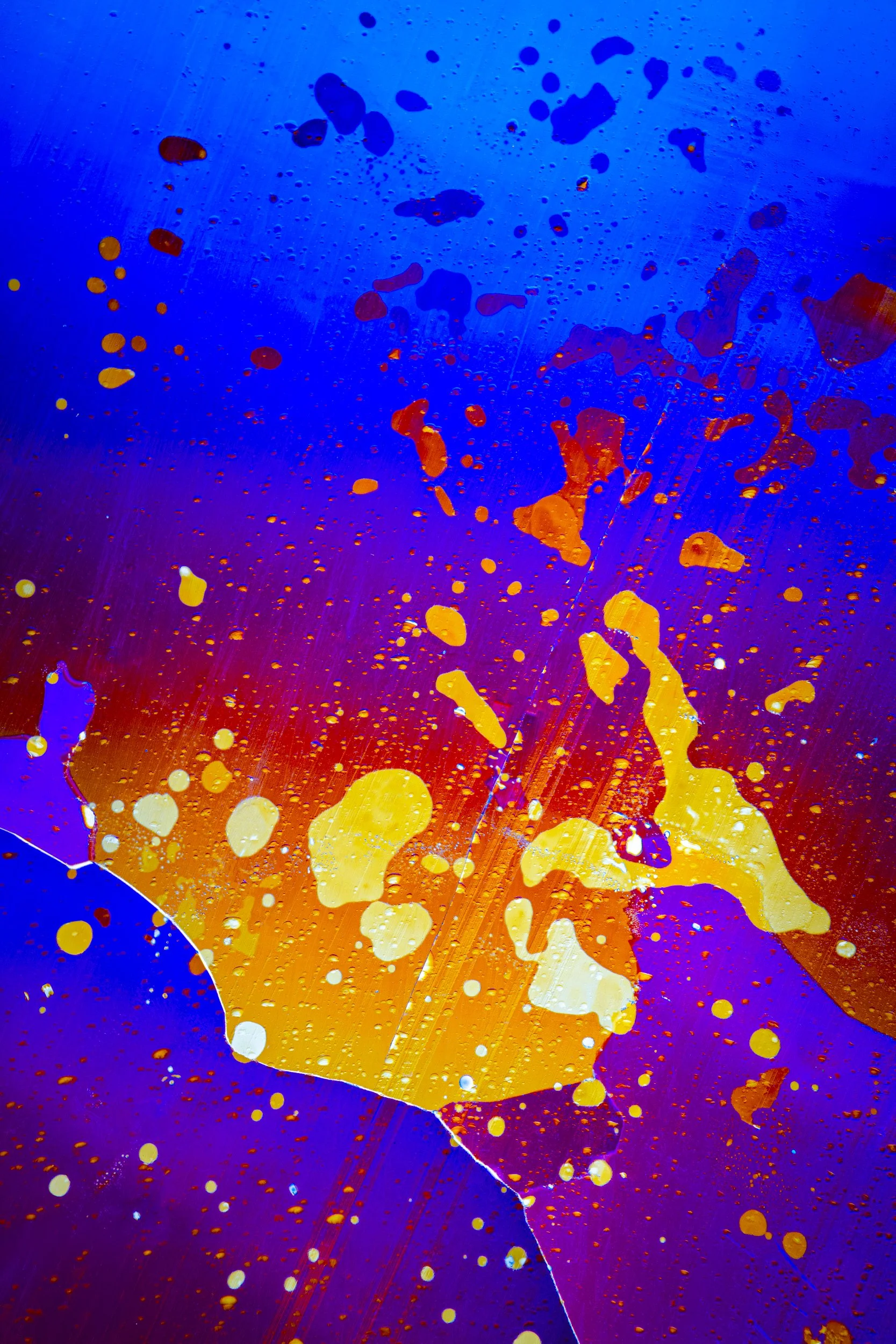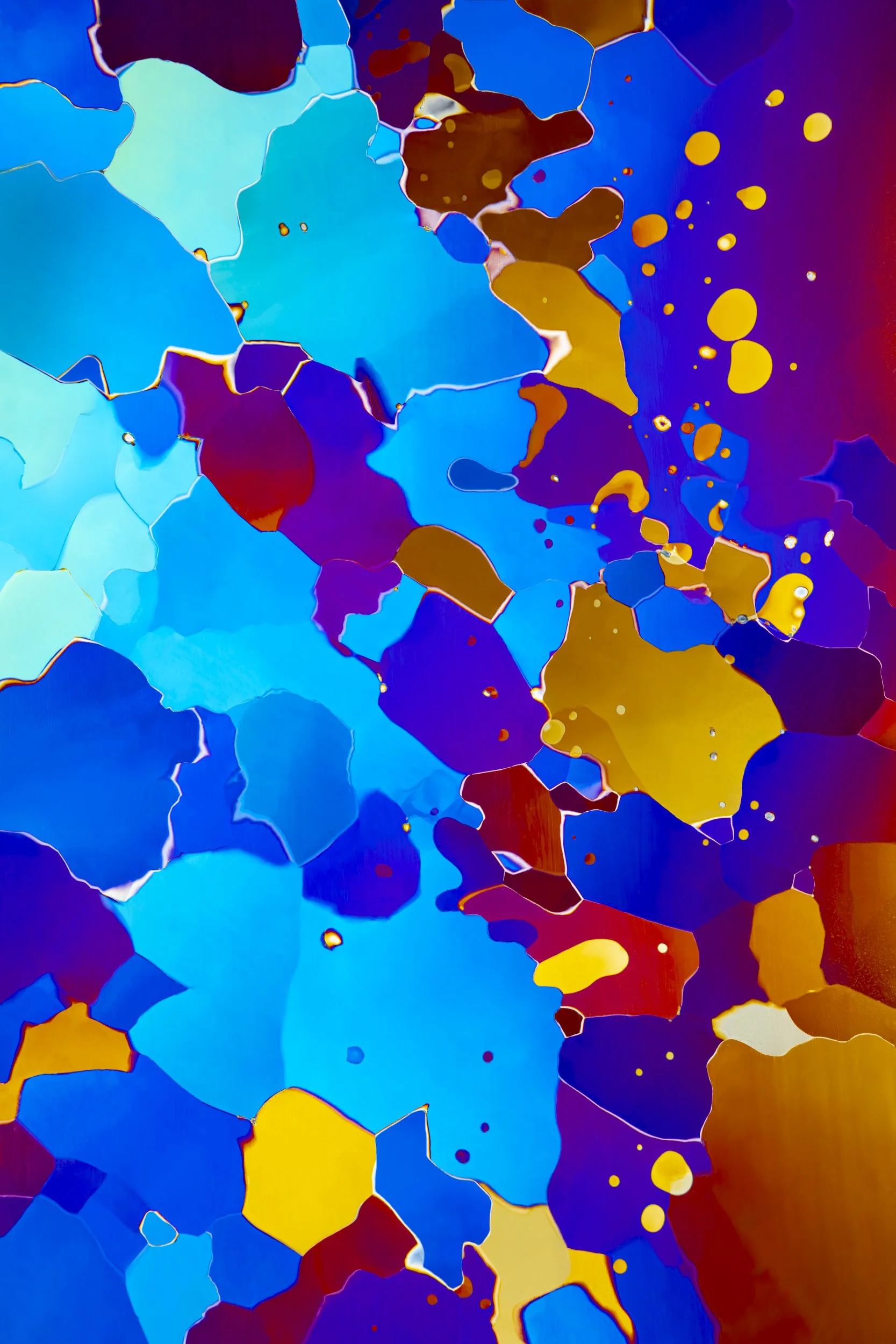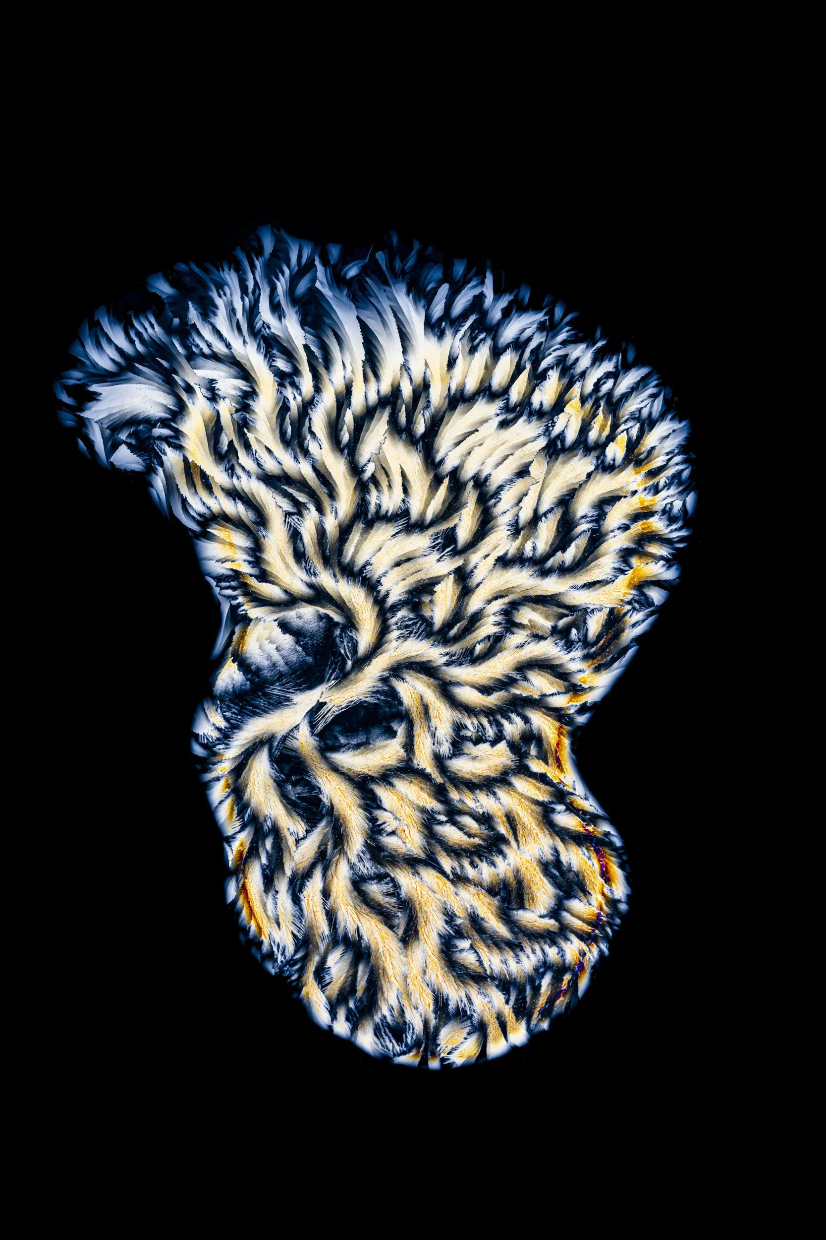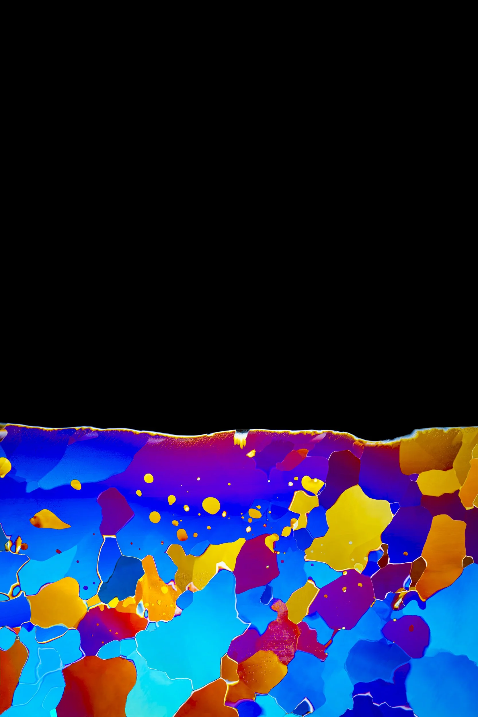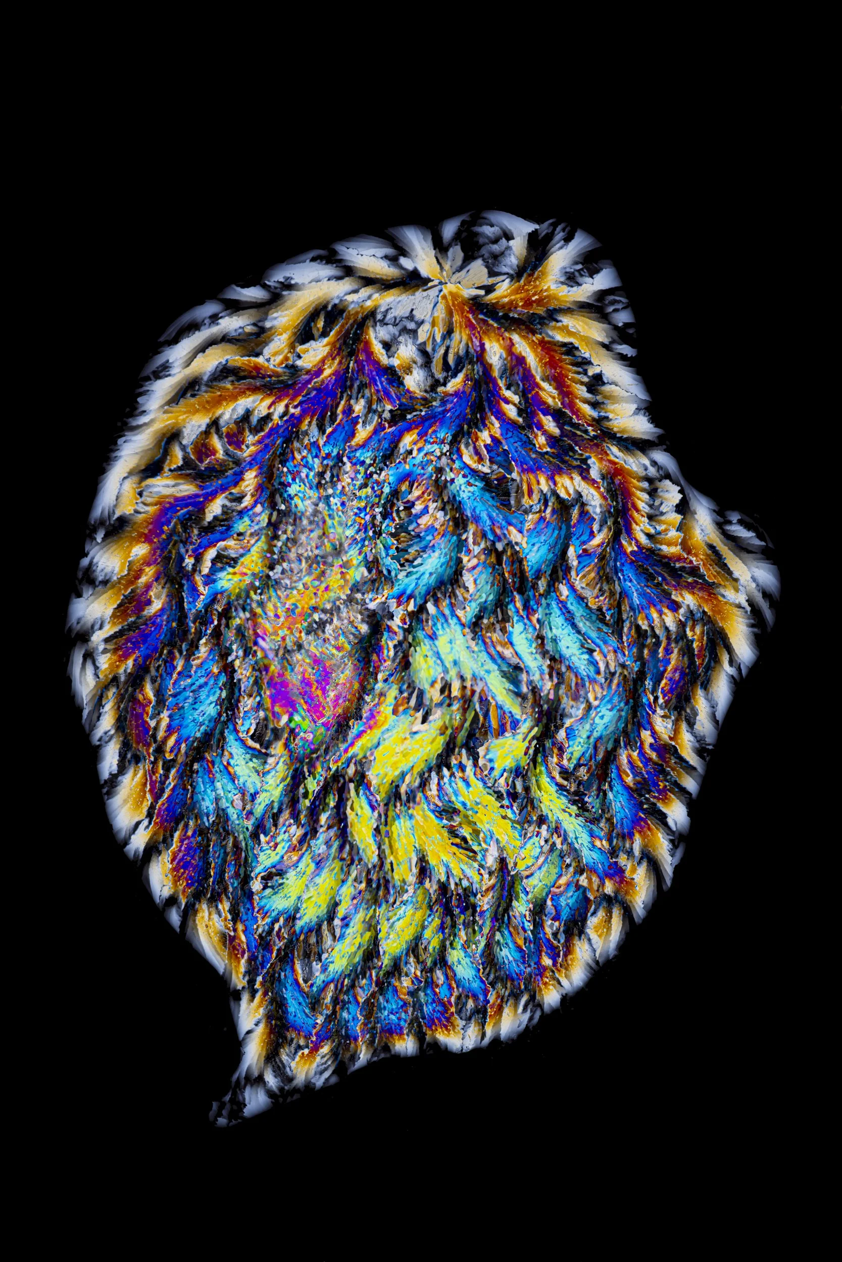 The abstract and colourful photographs show thin sections of ancient glacier ice and ultra pure water ice under cross polarised light.